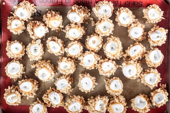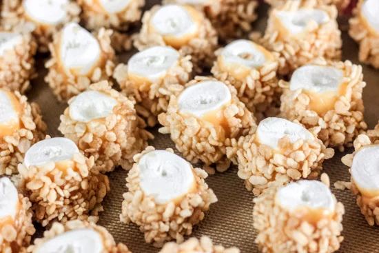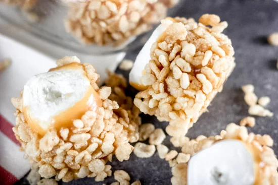 One of my coworkers topped into chat with me the other day and mentioned that her son was back from college and he requested they make Goofballs. I was like, huh? I’ve never heard of Goofballs. But then she explained the goodness that is Goofballs. Marshmallows dipped in caramel and rolled in Rice Krispies. Mind blown.