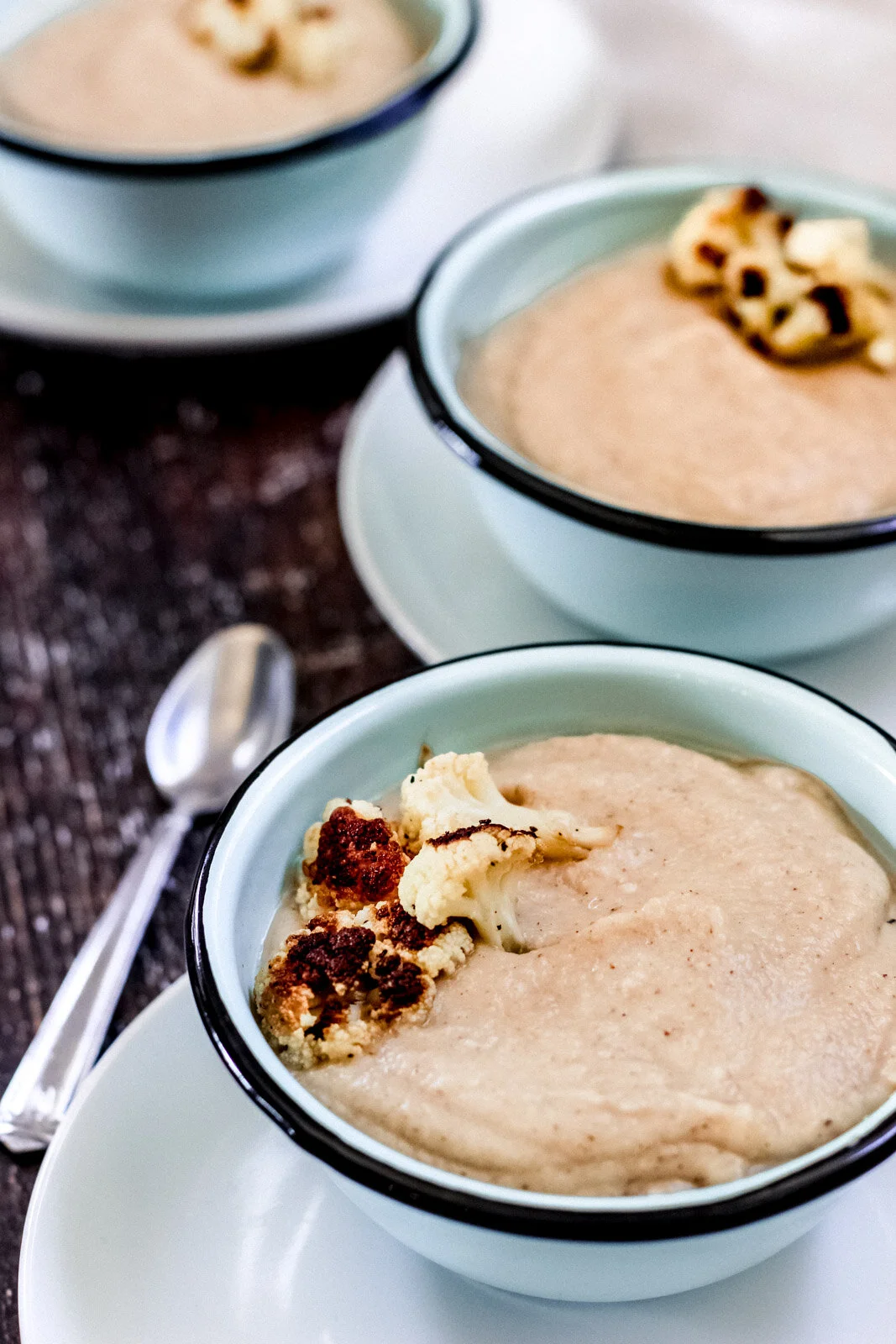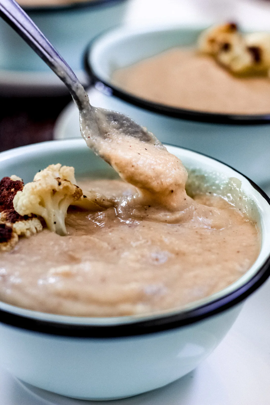 The other day I had this strange craving for cauliflower soup. Came outta no where. I’m not even sure the last time I had cauliflower soup, years maybe? I had a head of cauliflower in my fridge which definitely looked like it was ready to turn in the next few days so I made myself some cauliflower soup. Also, I’ve never made cauliflower soup. I do strange things like this, it’s normal.